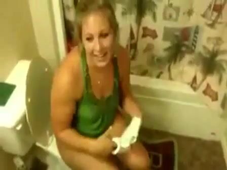 Hot butt blonde shitting in the toilet