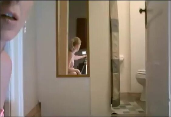 While in a bar, girl messes in her diaper.