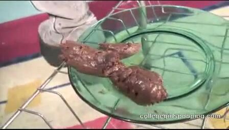 Hot college girl Cassandra pooping on the plate - Scat Video Collection