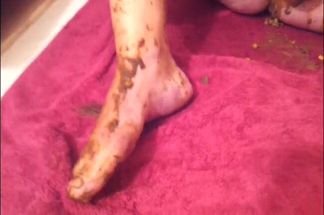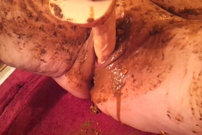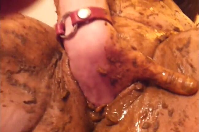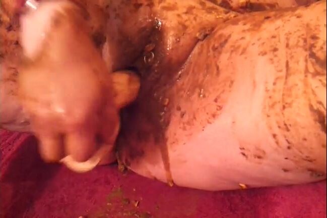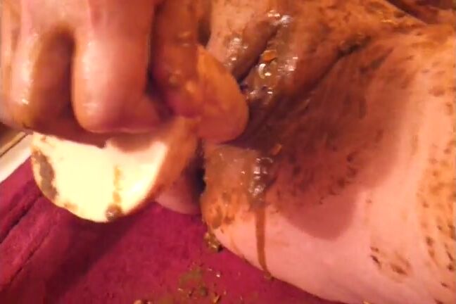 Smearing saved shit and fresh shit and stuffing it in