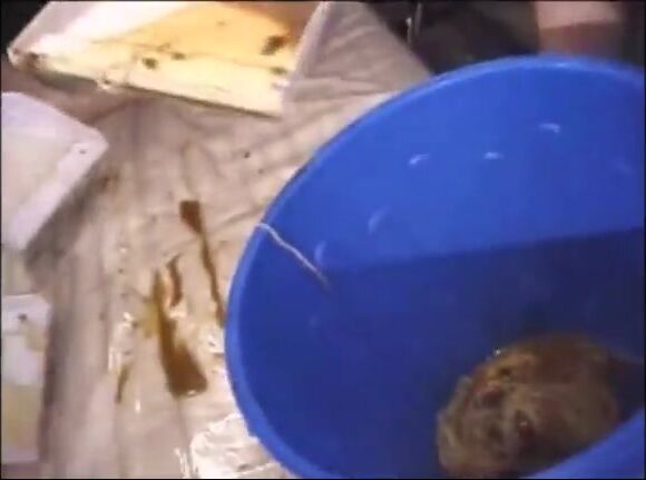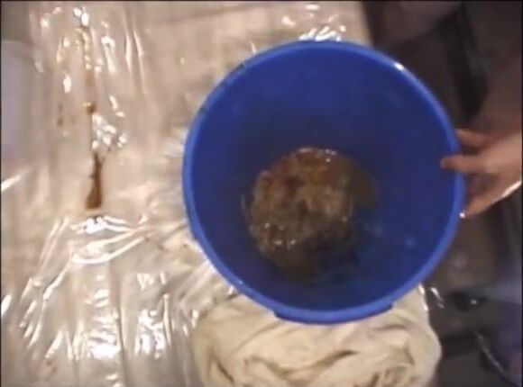 Smearing saved shit and fresh shit and stuffing it in