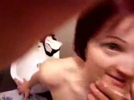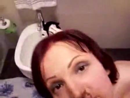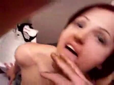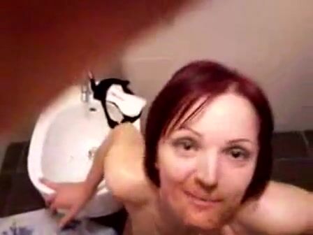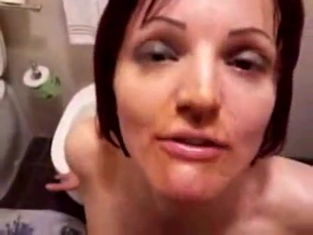 Dark-haired college slut spreading her thighs while nude so she can poop in this s...