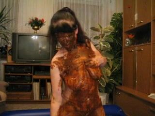 Camgirl brutal poo eating with much scat