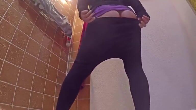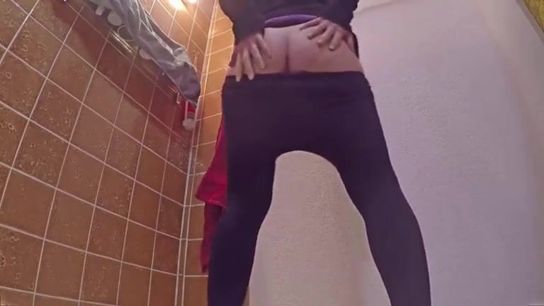 Girl open wide legs and shitting on the toilet floor