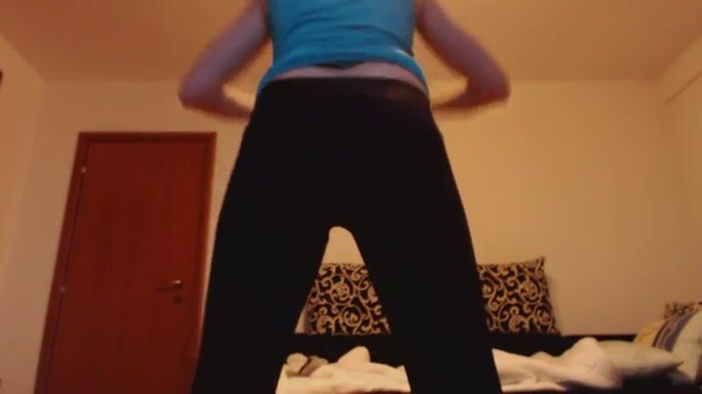 girl exercises while pooping
