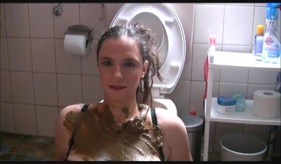Masked girl shitting on the stool