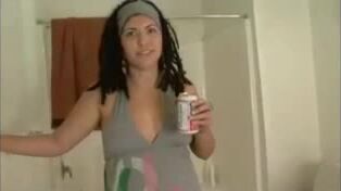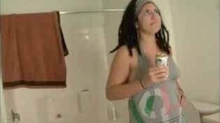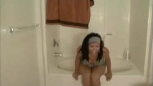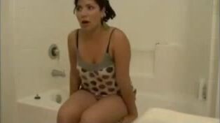 Bbw latina takes a small poop in toilet
