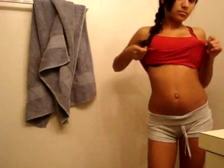 Perky latina strips naked in her bathroom