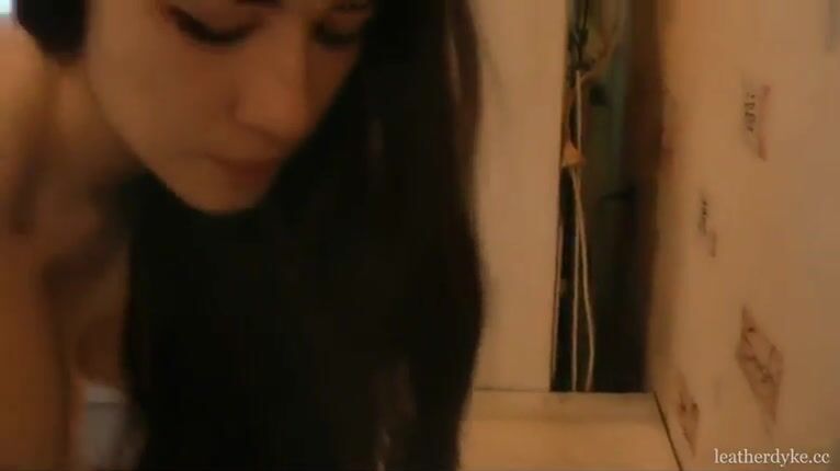 Russian brunette smoke & shit in kitchen+bathroom
