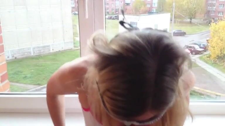 Panty pooping on the balcony