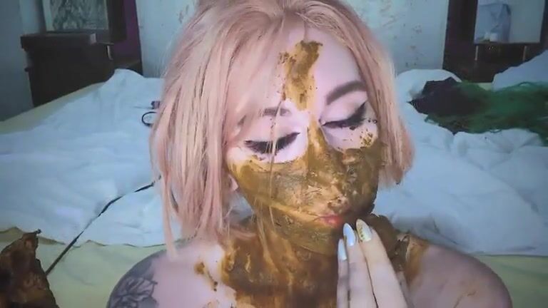 Girl shitting in the shower and smering it on body