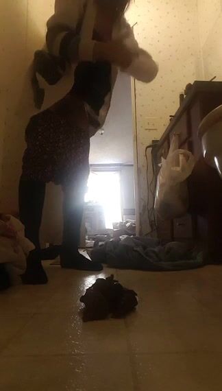 Taking off their panties after using the toilet
