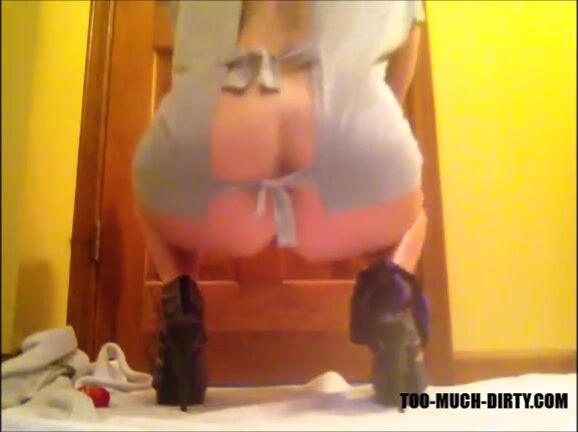 Long legs girl in high heels shitting balls and shit