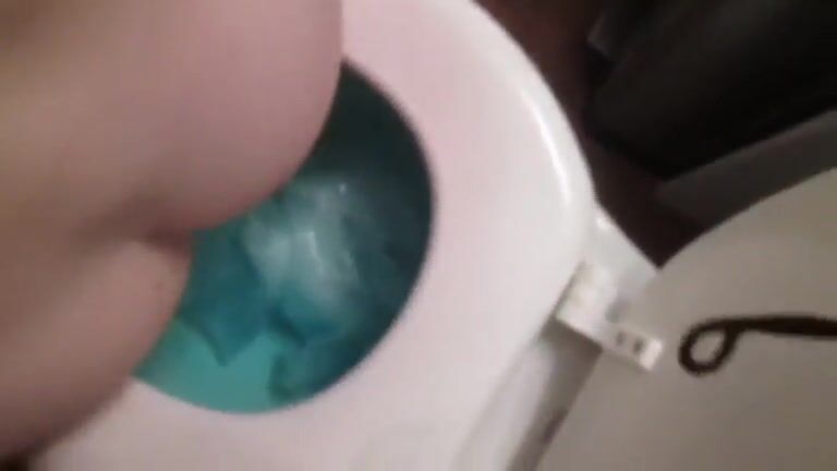 Girl open wide legs and shitting on the toilet floor