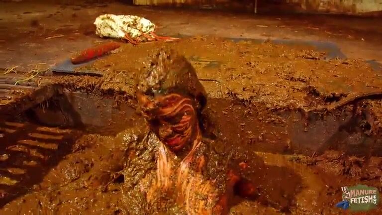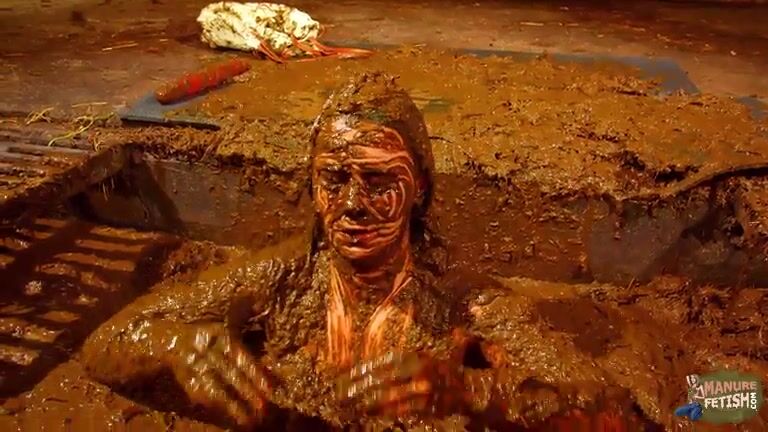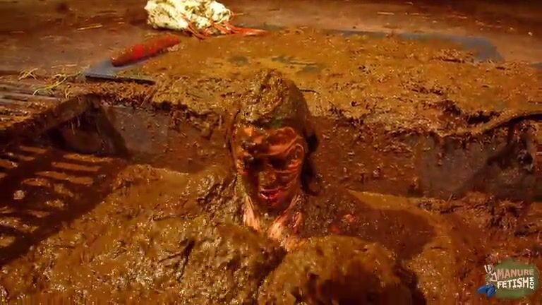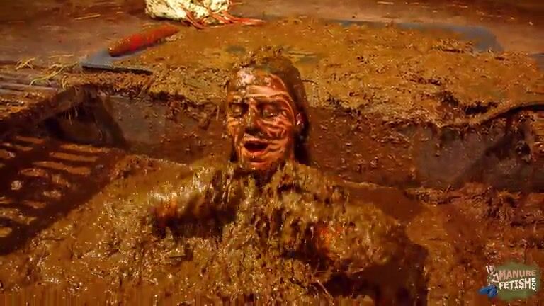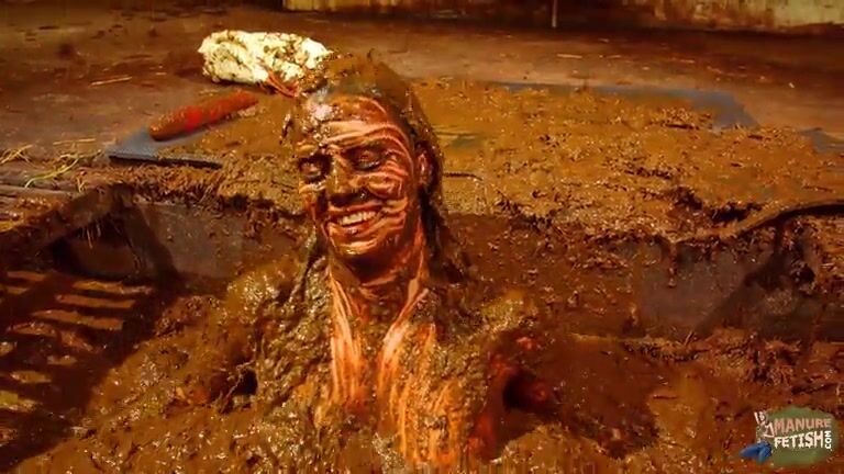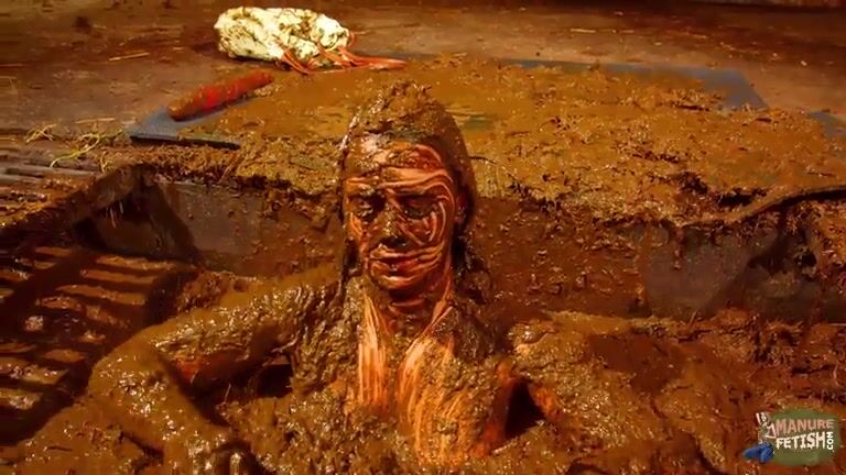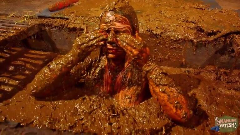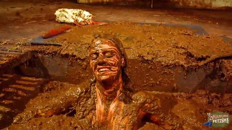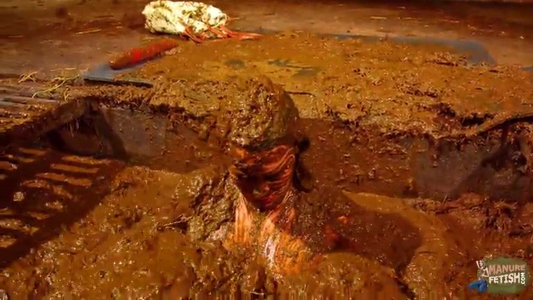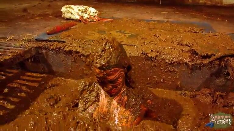 Betty has fun in the manure channel - bathing in cowshit