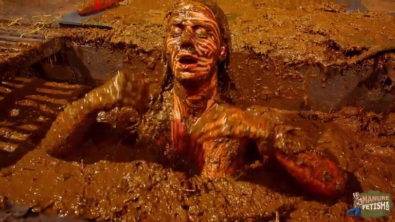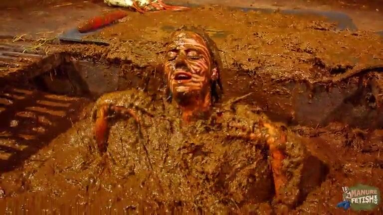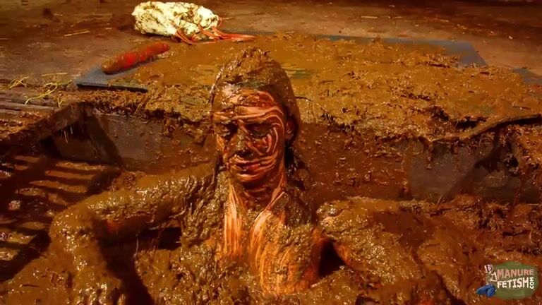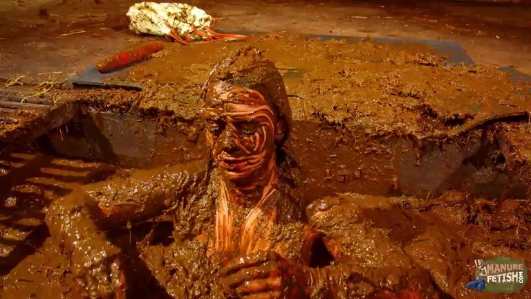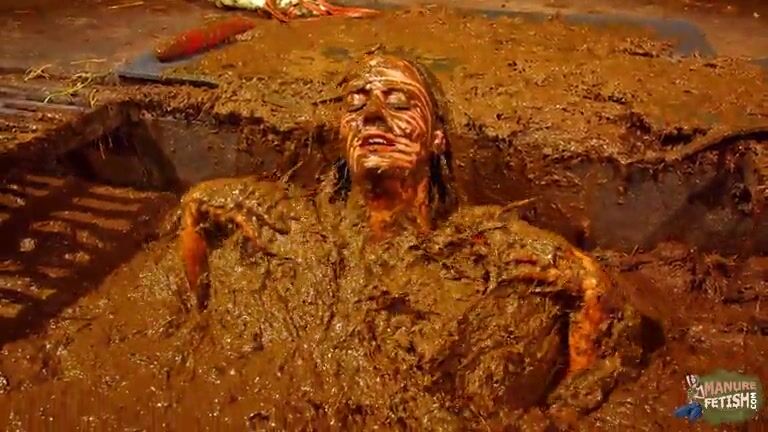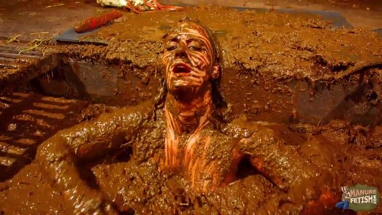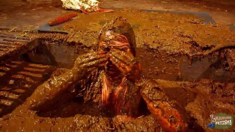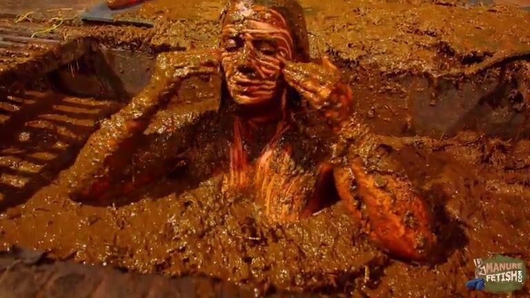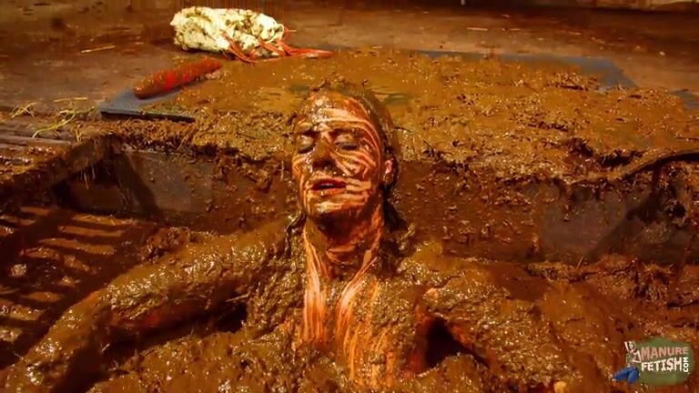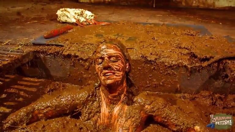 Betty has fun in the manure channel - bathing in cowshit