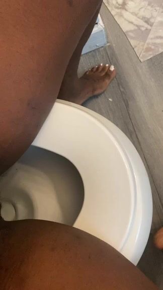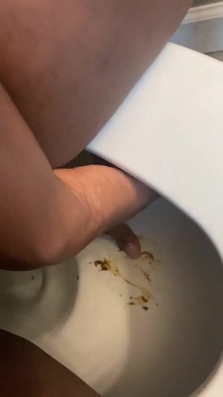 Ebony lady pushing pebbles into the toilet
