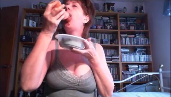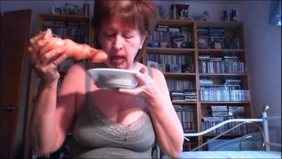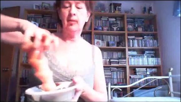 Mature lady shitting and playing with a dirty dildo