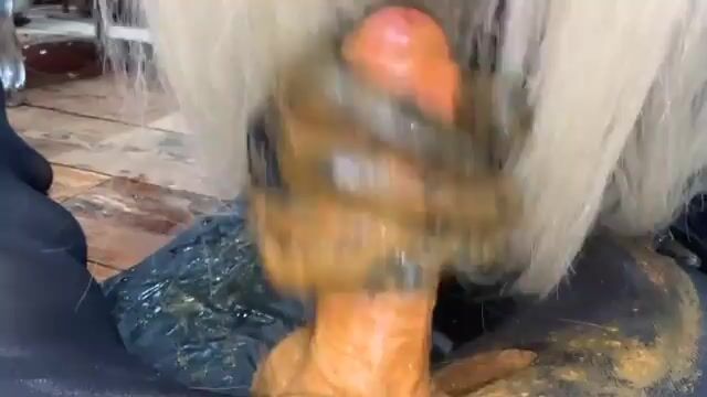 Mature mom riding dildo shitting and smearing
