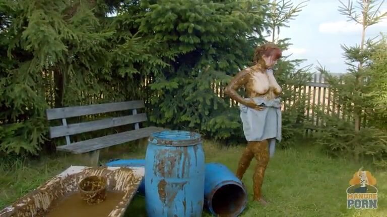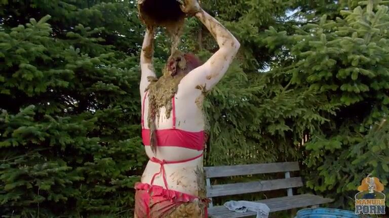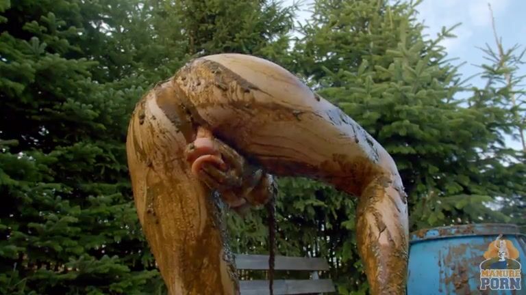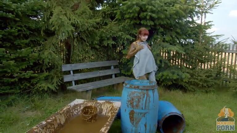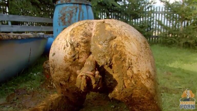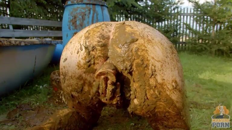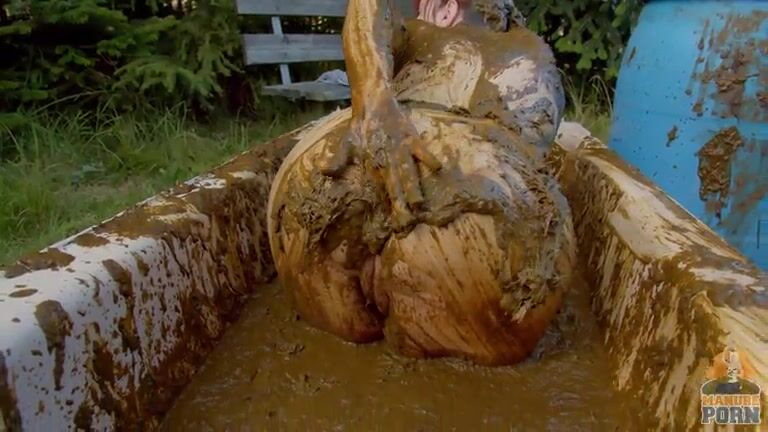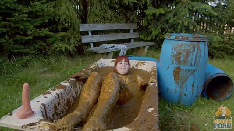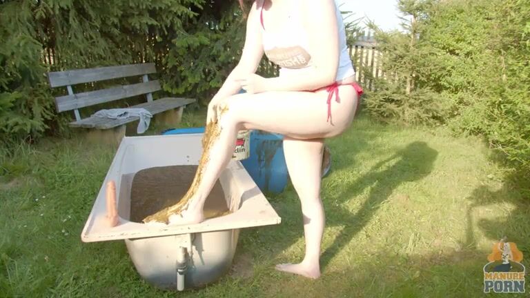 Masturbating in a bathtub full with cow shit