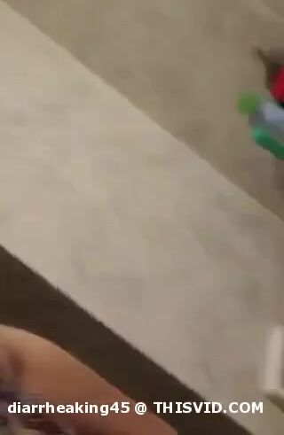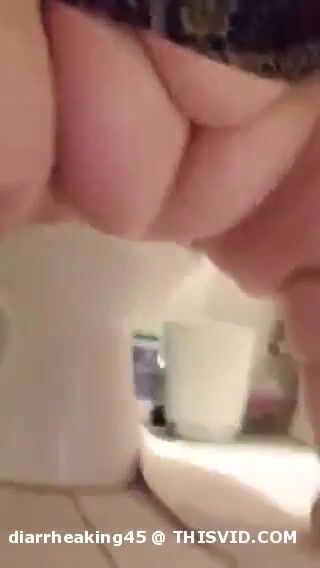 Girl open wide legs and shitting on the toilet floor