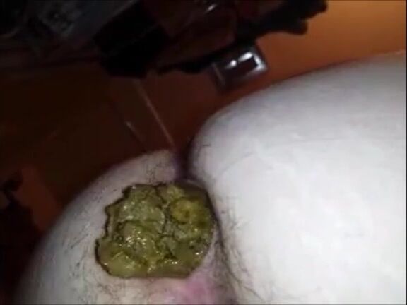 Hairy butt woman shitting a big quantity closeup