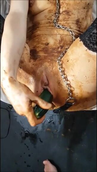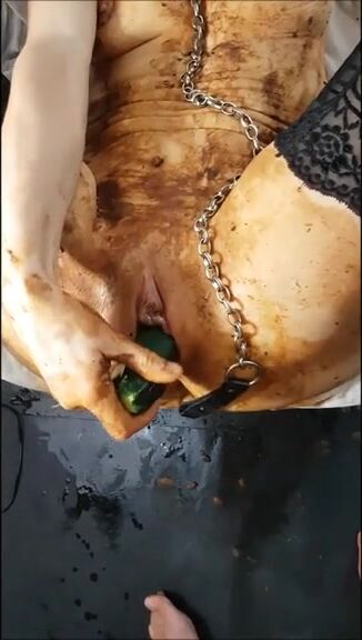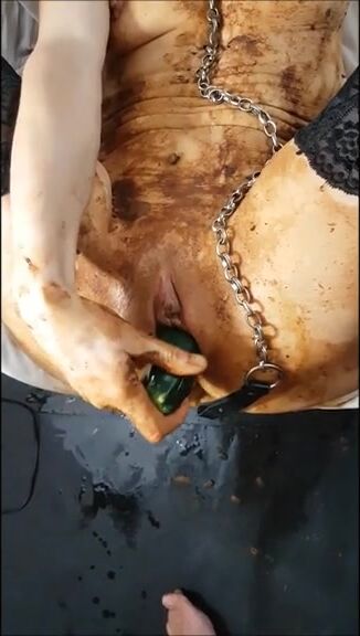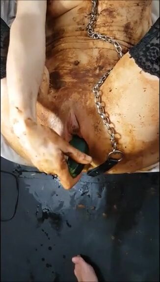 Shitty masturbation with a zucchini
