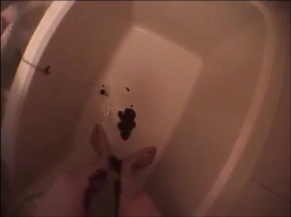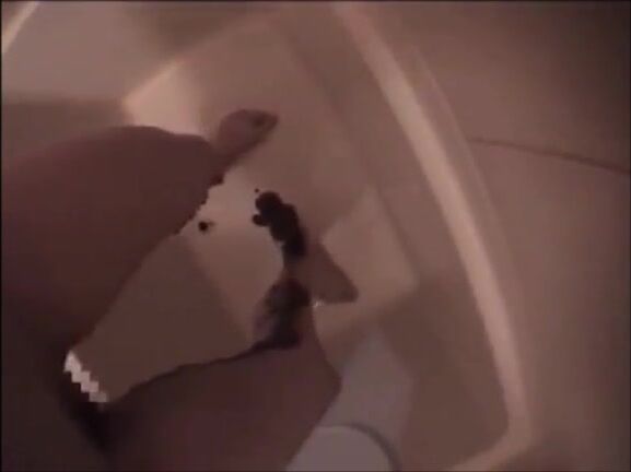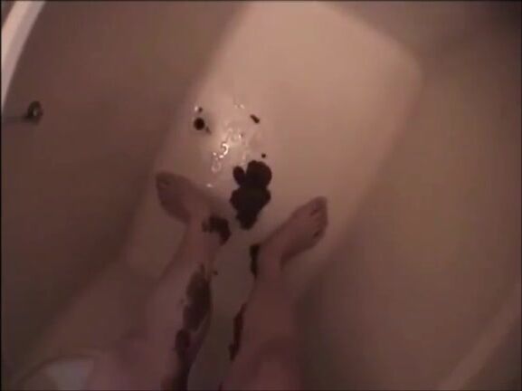 Asian milf shitting diarrhea on her legs satanding up