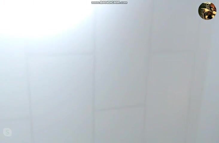 She kneels in the bathtub and poops