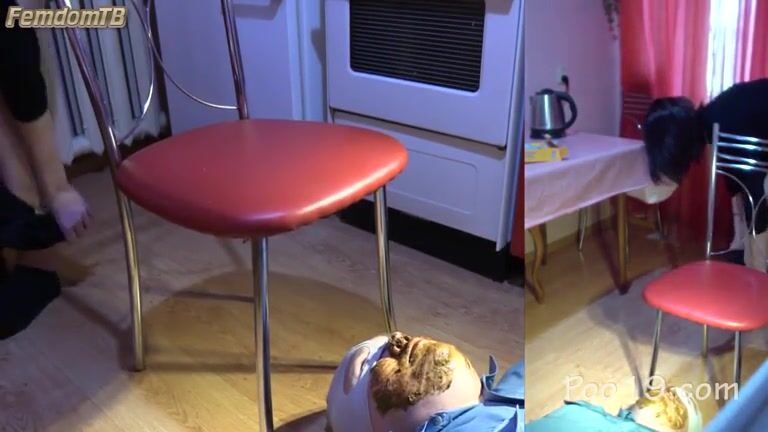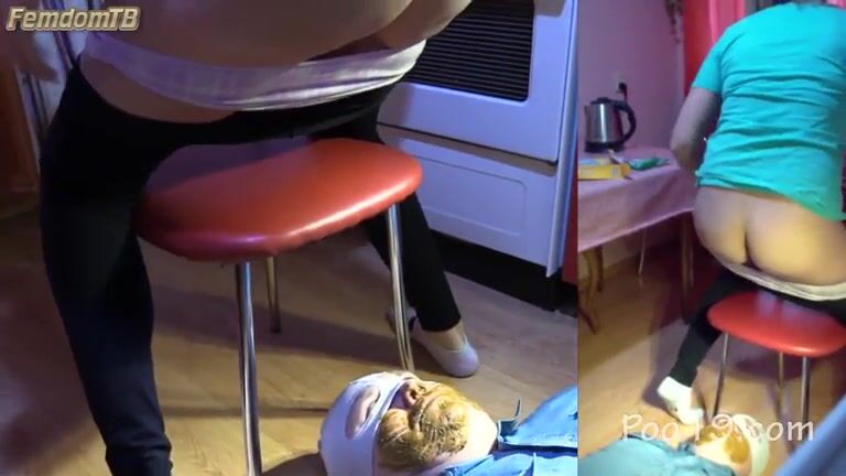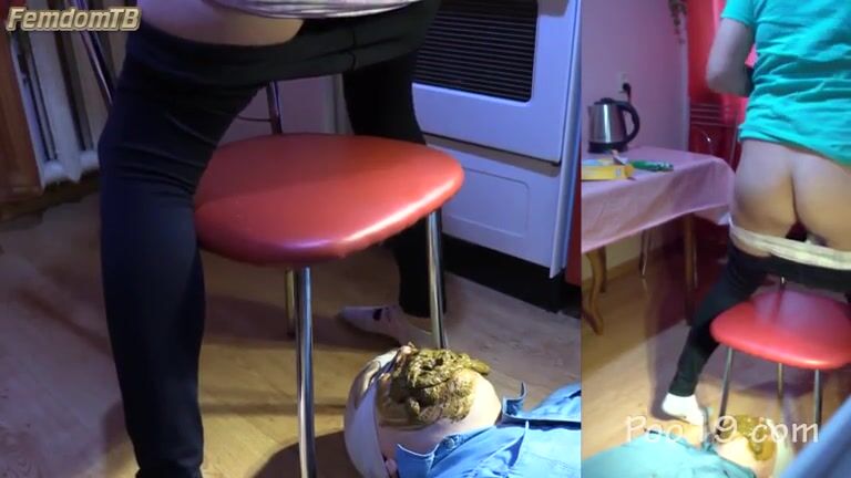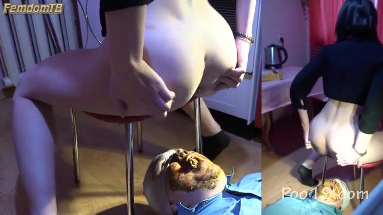 Woman poops in her slaves mouth -