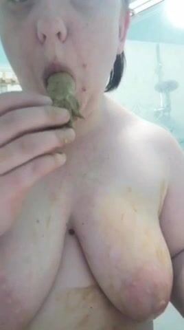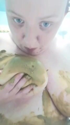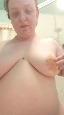 Girl shitting in the shower and smering it on body
