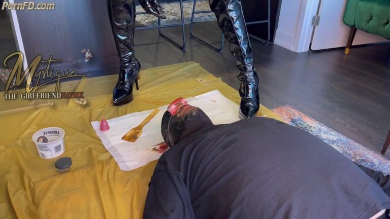 Mistress feeds slave her shit