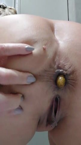 Skinny blonde teen shitting on the floor