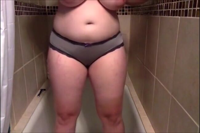 Big tits girl shitting on panty standing up