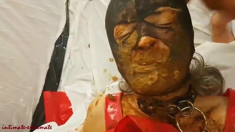 Masked girl shitting on the stool