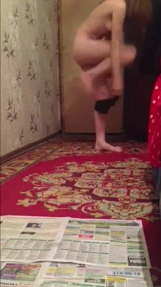 Beautiful skinny girl shits naked on her floor