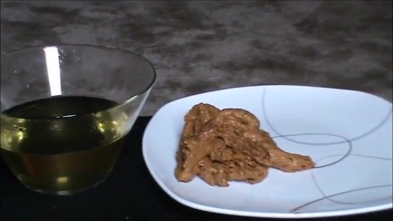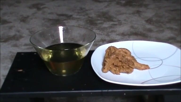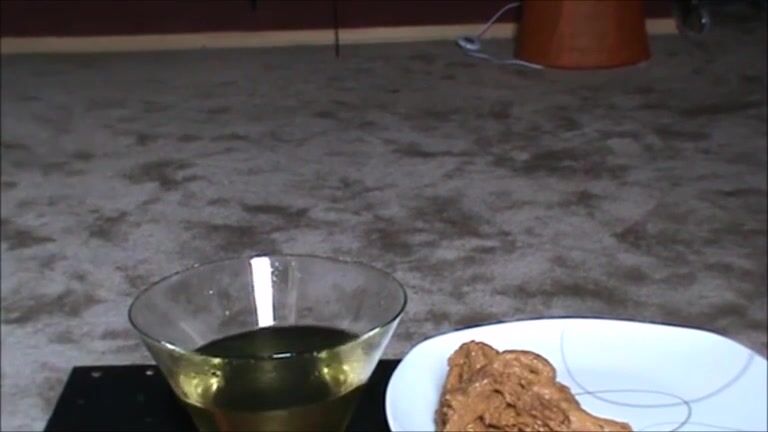 Fat hairy woman piss on a glass and shit on a platea_plate