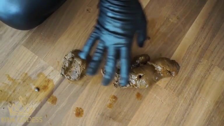 Sexy girl shits in her hand