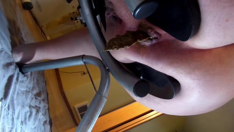 Mature mom riding dildo shitting and smearing