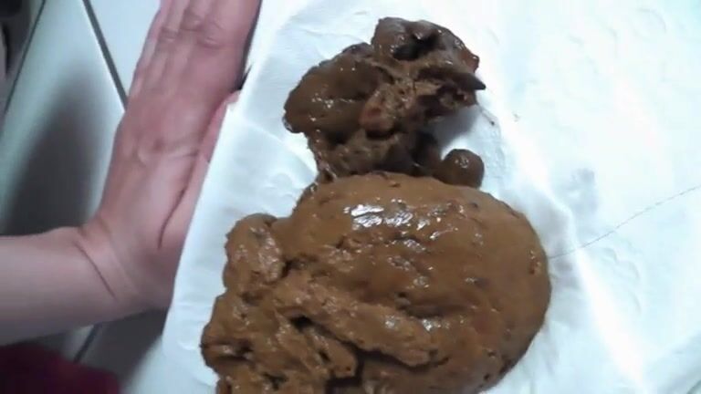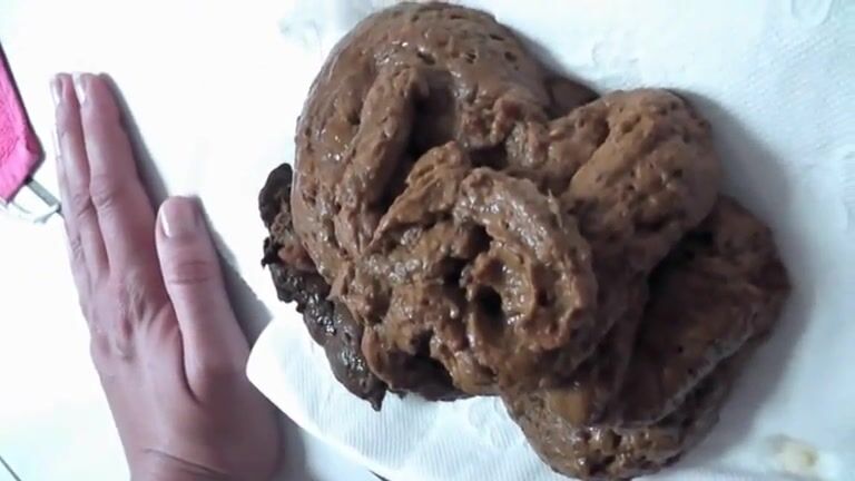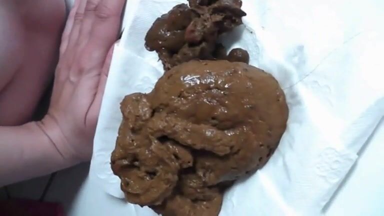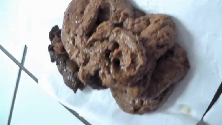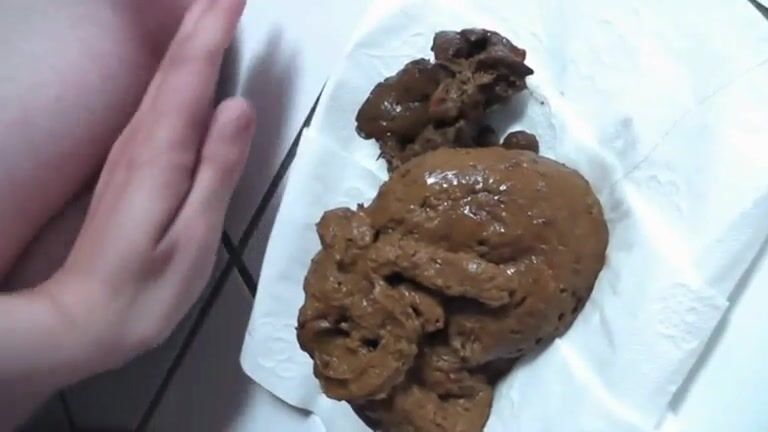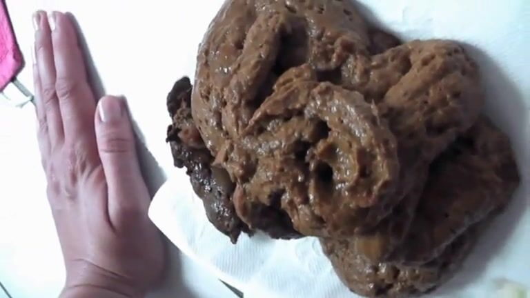 Girl shitting big turd on the plate