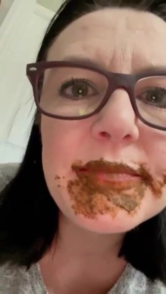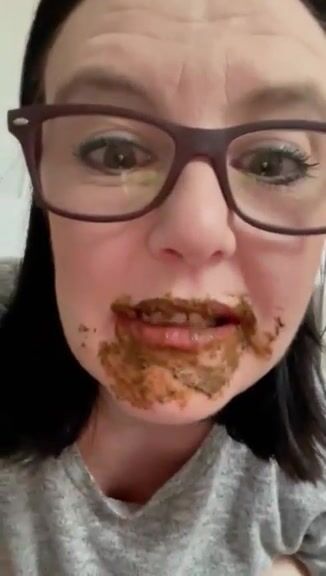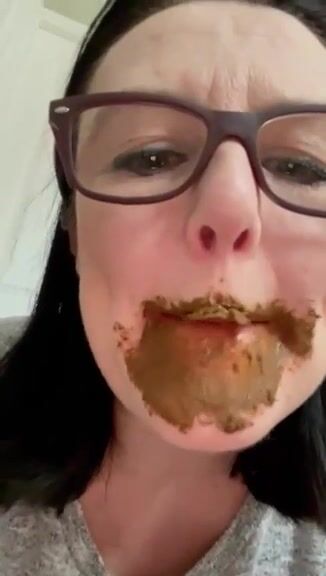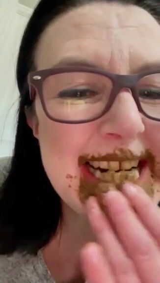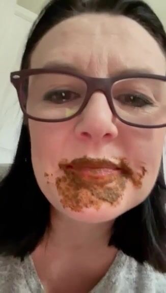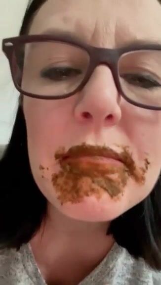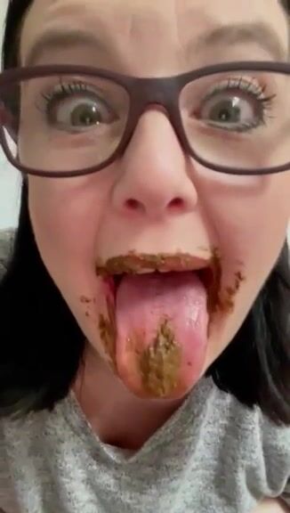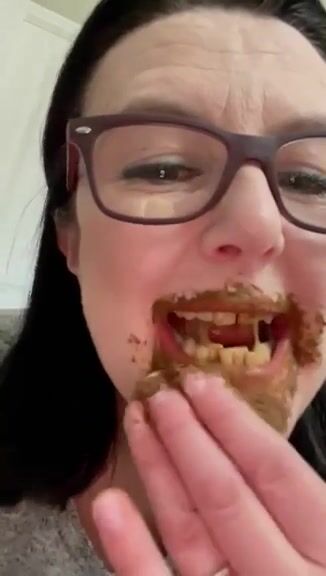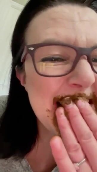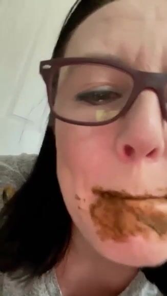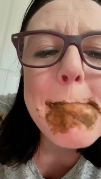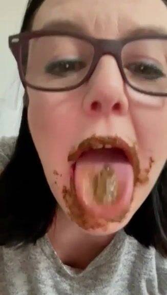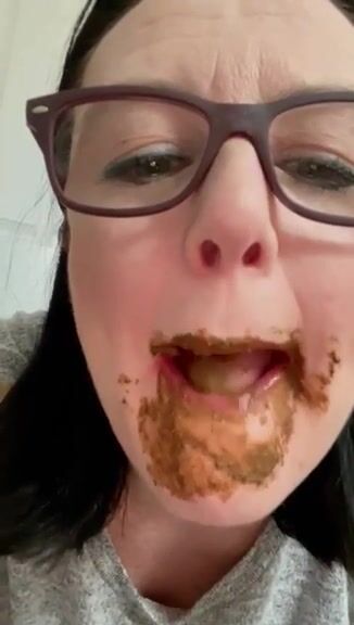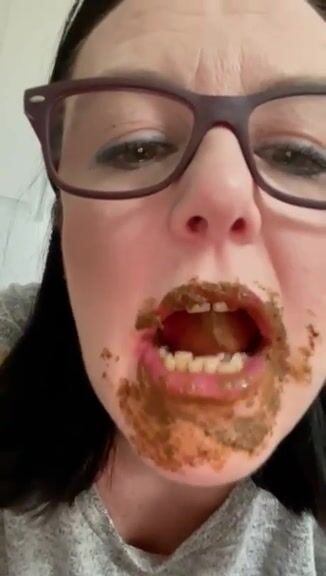 Female enjoys eating a mouthful of shit