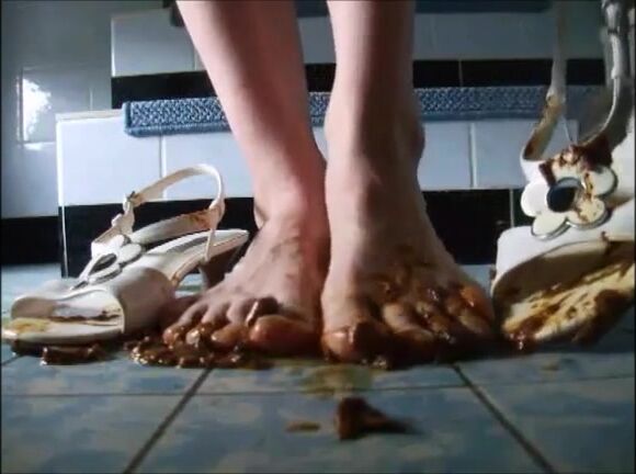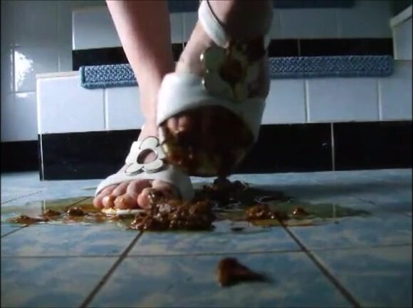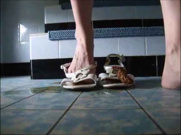 Girl shitting on sandals then wearing it_t