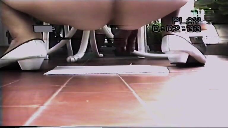 While in a bar, girl messes in her diaper.