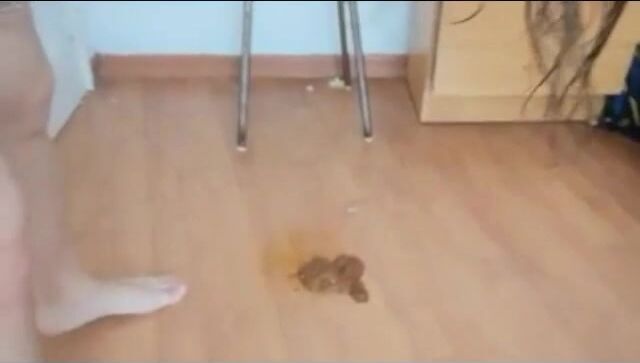 Asian mistress feeding slave with shit
