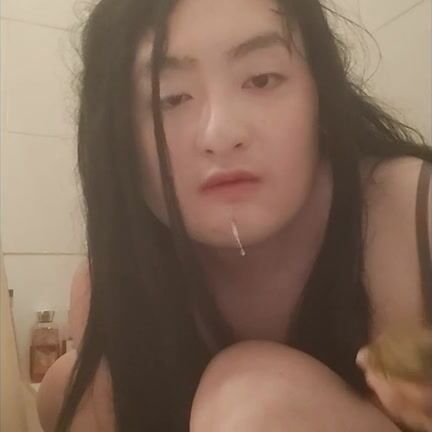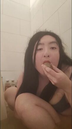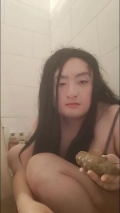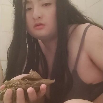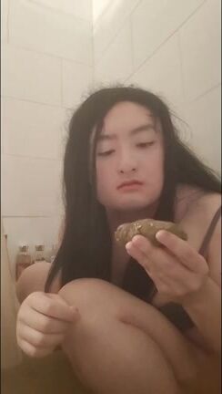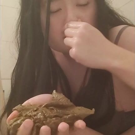 Asian girl tastes her shit