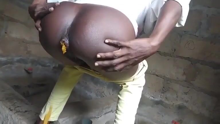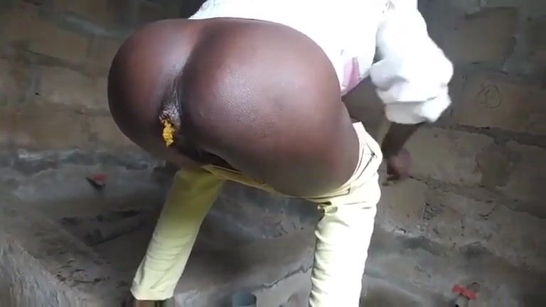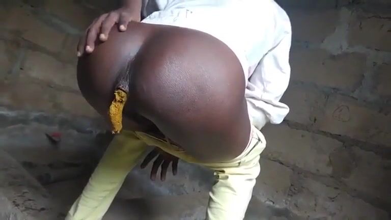 Yellow poop from dark ebony slut