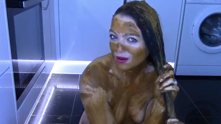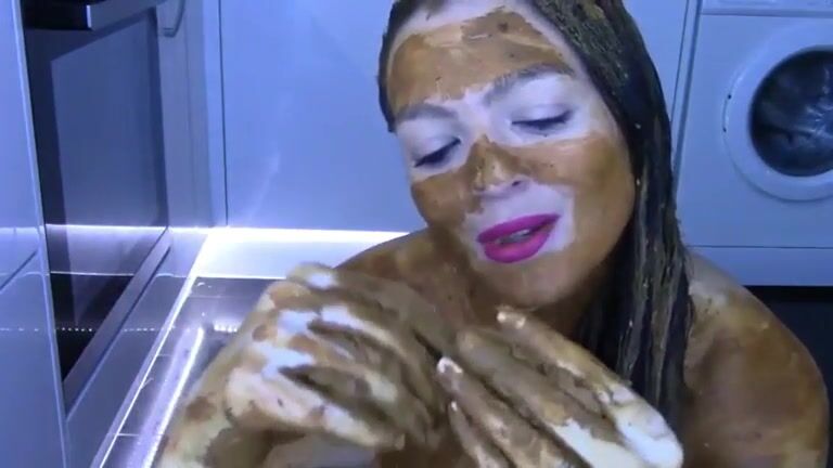 Nice girl shit and smear her body