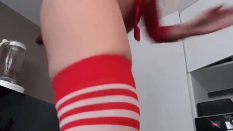 Girl in red bodysuit shitting for you eyes
