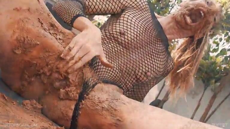 Girl shitting in the shower and smering it on body