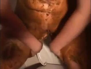 Dirty girl smearing shit all over her body